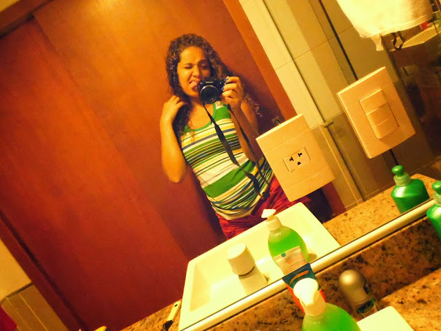 Fazendo graça no espelho.